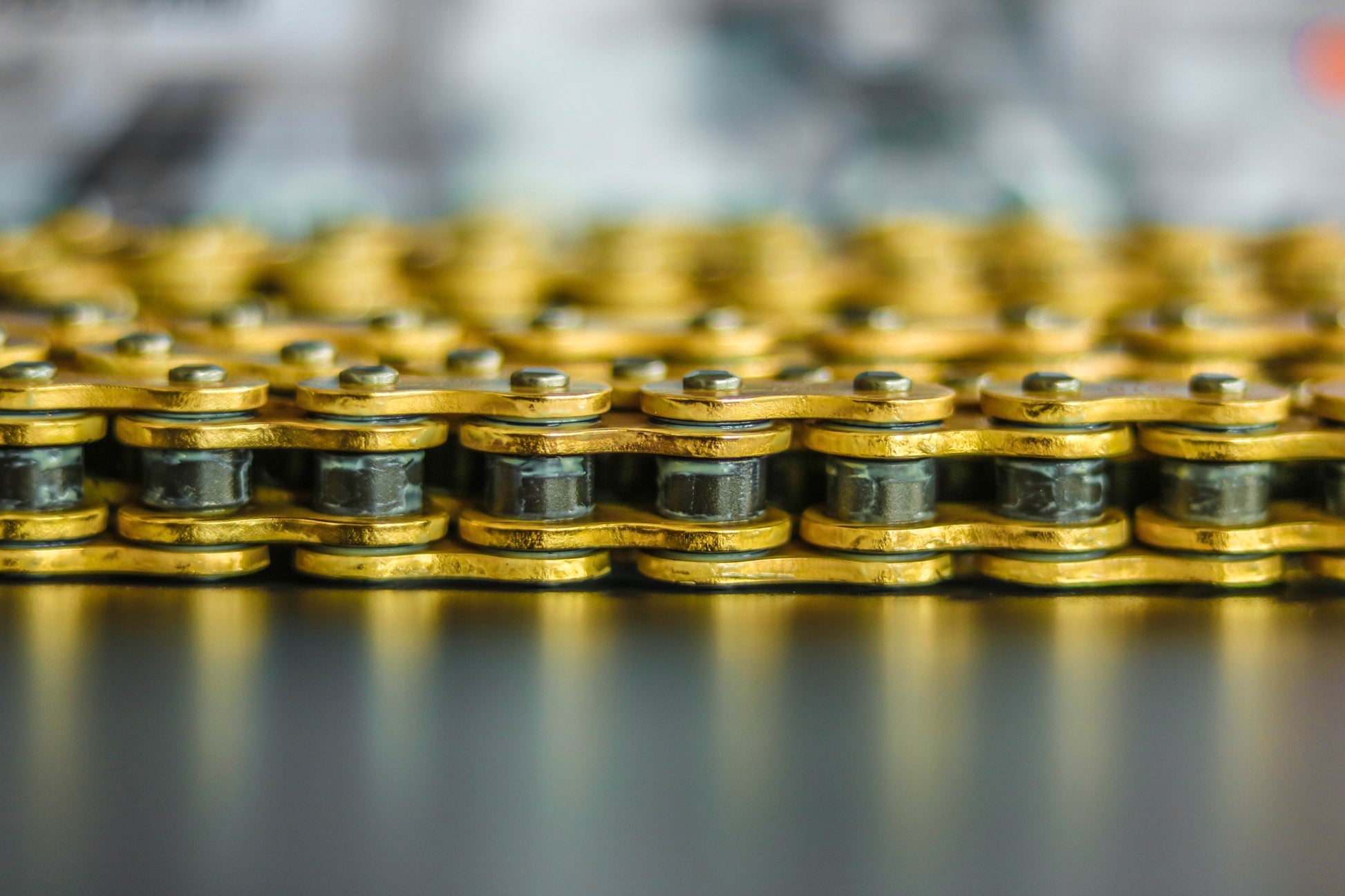 - Diseño elegante: Los eslabones exteriores dorados resaltan el aspecto deportivo de su motocicleta.
