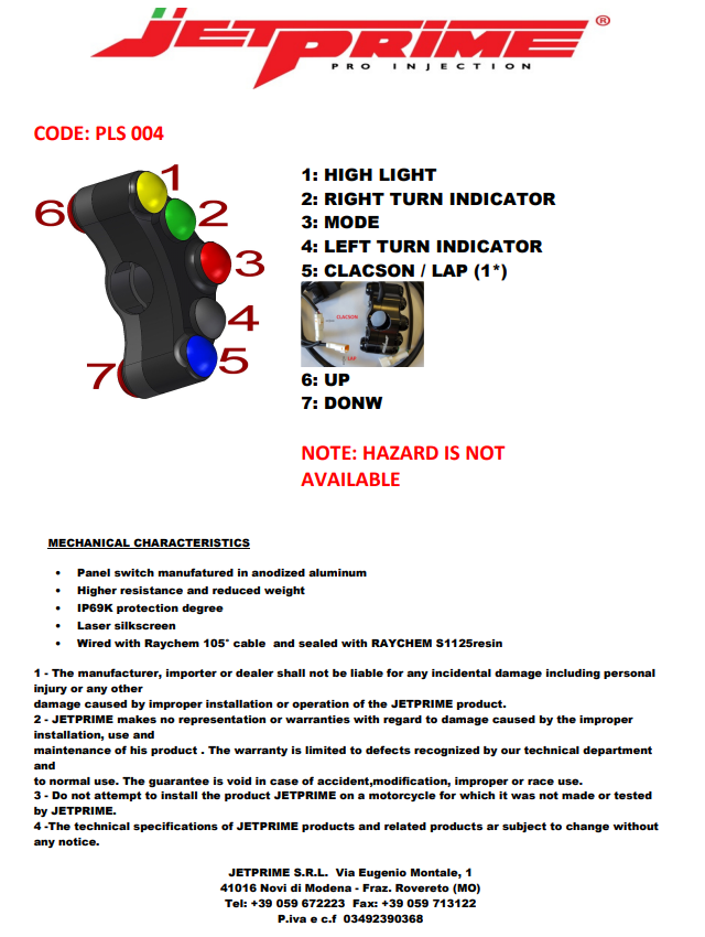 Interruptor de manillar izquierdo Street JetPrime Kawasaki ZX-10 R/RR (16-20) JP PLS 004
